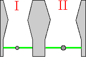 | Der Registervergaser hat in der Regel ein kleines und ein grosses Venturi. Stufe I ist kleiner als Stufe II. Bei der Ente: Stufe I 18mm, Stufe II 26mm. Die Drosselklappen öffnen nicht gleichzeitig. Zuerst öffnet die erste Stufe. Bis zum mittleren Teillastbereich wird der Motor also nur über ein Venturirohr versorgt. Erst wenn man so richtig Gas gibt öffnet auch die zweite Drosselklappe und gibt den vollen Vergaserquerschnitt frei. | ![]() |