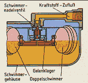 schwimmt deshalb auf dem Benzin. Über einen Hebelarm, der gleichzeitig seine Befestigung